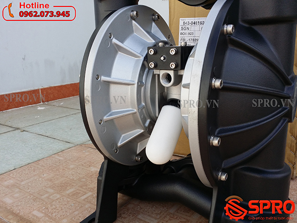 - Máy bơm màng thân được làm từ nhôm ( A-Aluminum) và màng bơm làm từ O-Santoprene.